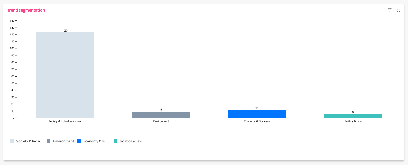 Further, the absolute number of elements is displayed in the center of the donut chart (2).
